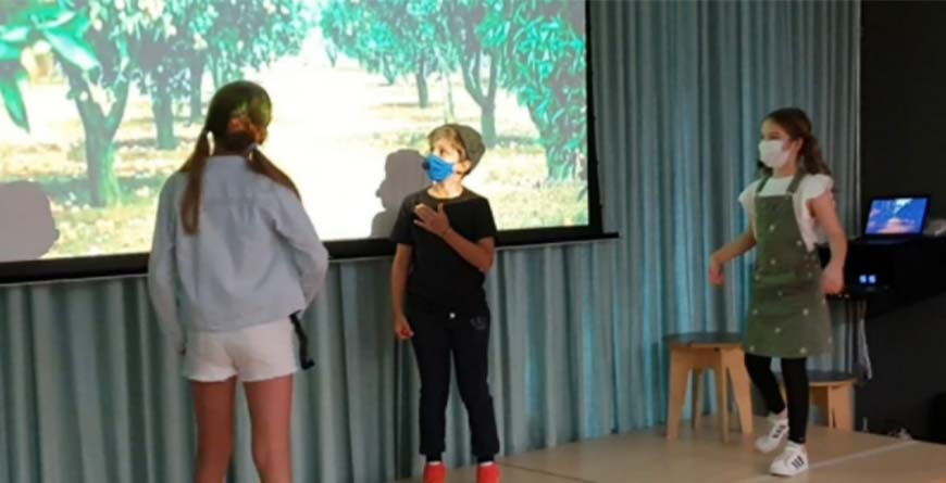 Após serem repertoriados, os alunos foram instruídos a formar grupos de quatro crianças e selecionar um conto para interpretar em uma peça. Eles foram convidados a adaptar a narrativa do formato de conto para teatro. A proposta foi desafiadora, uma vez que o roteiro devia conter menos descrição e mais diálogos.