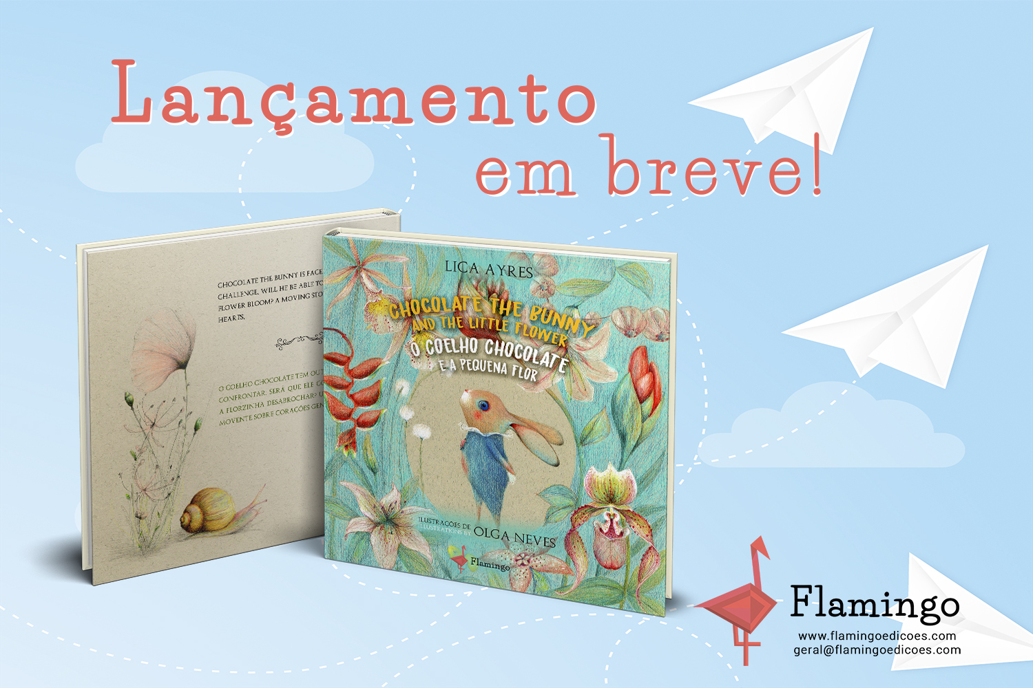 A professora do G5 (5 anos) Maria Angélica Ayres está lançando seu segundo livro infantil: “Coelho Chocolate e a Pequena Flor”. A história é a continuação de sua primeira obra, “Coelho Chocolate e a Pedrinha Preciosa”, publicada em 2019.
