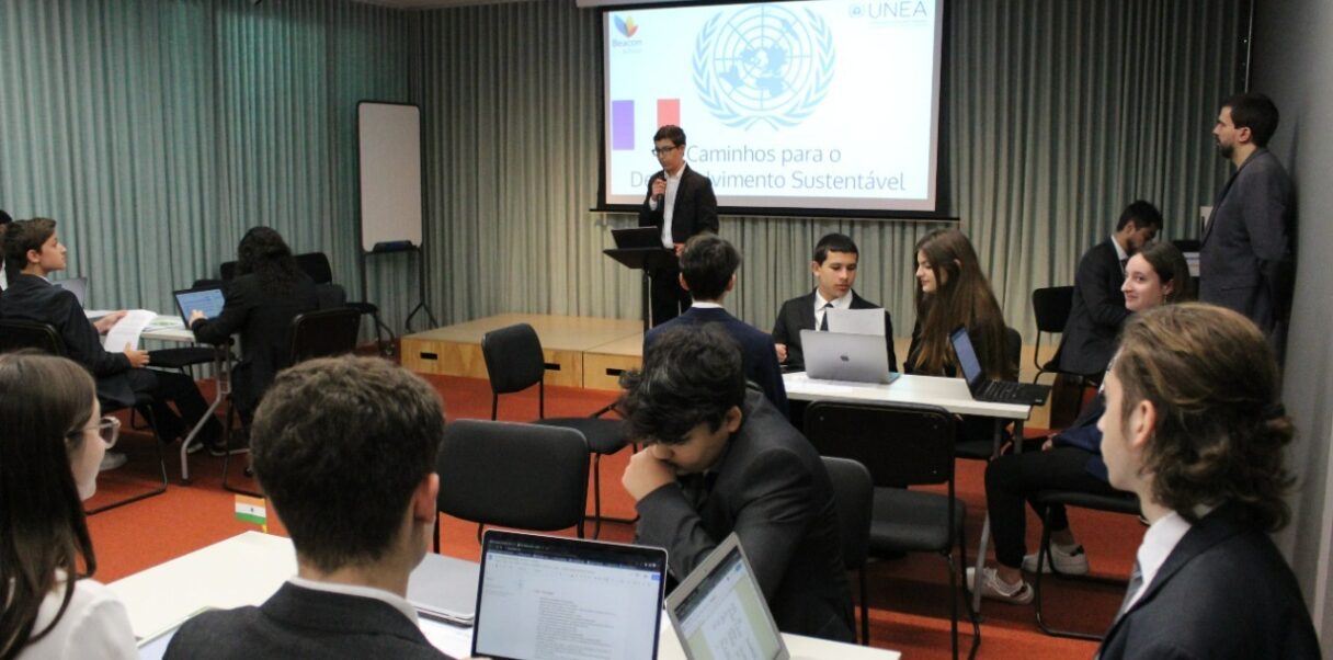 How important is the union of countries for the world to move towards a sustainable future? The 9th-grade students (Y9), encouraged by triggering themes in the classroom in the disciplines of Science and Geography, participated in the first simulation of the United Nations Assembly at Beacon. The moment was an opportunity to present how different delegations dialogue and establish action plans on certain issues. In this case, sustainable development.