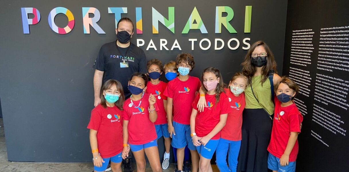 The exhibition allowed connections to the first two Units of Inquiry, “We Can Change the World” and “Materials Matter”. Themes such as diversity, war and peace, the artist’s impacts on the world, how he lived, his relationships, and who influenced him could be seen up close. The students actively participated in the interactive proposals in the exhibition: they investigated, had fun with the color game the painter used, observed the huge model of the buildings around the world where the works are exhibited, and experienced Portinari’s different phases through giant screen projections.