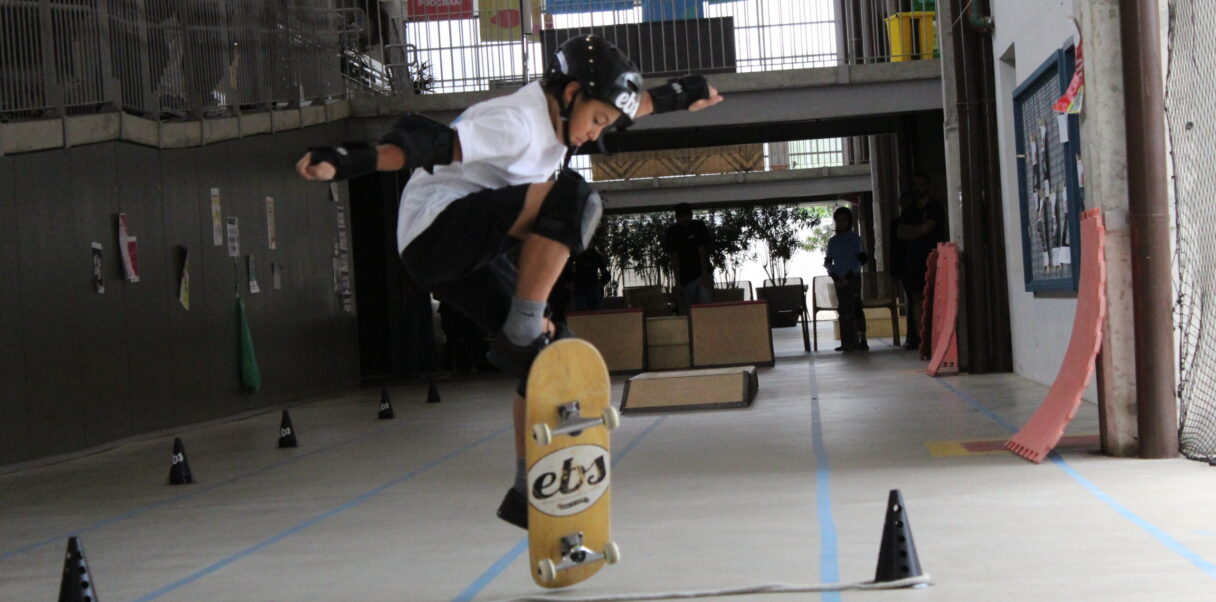 Through motor exploration, the children and teenagers were able to participate in activities such as an obstacle course in the Sports School classes, skateboarding challenges and maneuvers, and slackline and climbing walls in the Adventure Sports classes, among others.