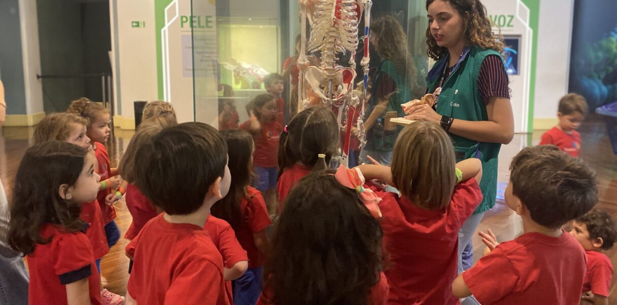 The museum was chosen for the field trip because it has an area called “Life” that offers many materials and experiences about Brazilian biomes, classifications of living beings, curiosities about the animal world, and, being the focus of the unit, an area about the human body, thus creating an investigative environment for the children.