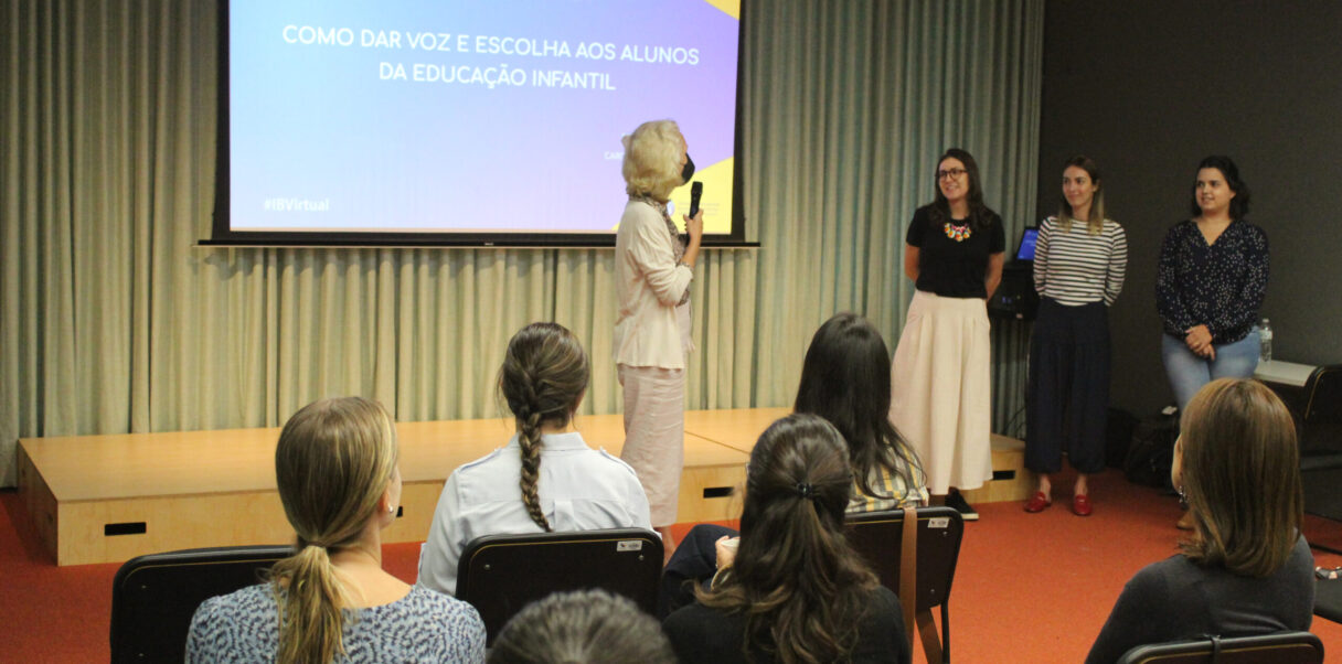 “Café & Educação” aims to bring important practices and concepts to our school. It is led by coordinators and teachers from the pedagogical team. With the theme “Giving Preschoolers a voice and a choice”, the meeting was conducted by the G4 coordinator, Priscila Amado, and teachers Thaiza Barros (G4) and Carolline Lacerda (G5).