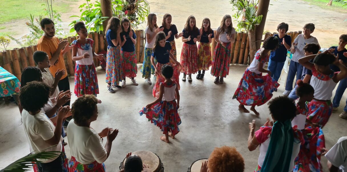 The trip’s itinerary also included a visit to traditional communities in the area, such as Pataxó indigenous villages and quilombolas. The students showed great curiosity for the people present in the visited spaces and were able to follow a little of their routine, drawing a parallel between their origin and tradition and the way they live nowadays. In addition, they learned about the importance and the meaning of the typical songs of these cultures, which were discussed in class and reinforced during the field research.